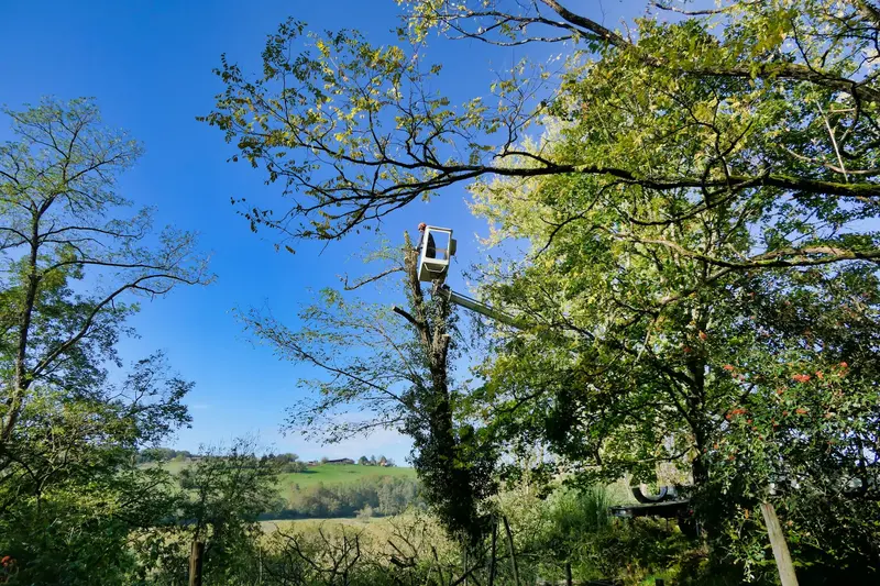 Pour les arbres de grande hauteur (plus de 8m) ou les abattages complexes, nous travaillons avec des partenaires élagueurs-grimpeurs certifiés.